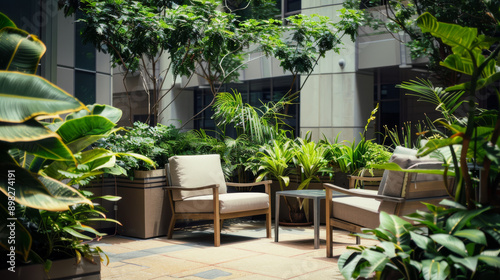 serene, inviting, nature, city, courtyard, greenery, calmness, cosy, relaxation, peaceful, garden, scenic, green, plant, landscaping, quiet, fresh air, comfort, lush, urban setting, refreshing, escape, contemporary, design, furniture