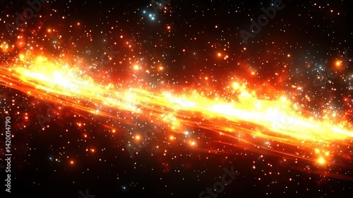 A radiant swirl of fiery oranges and golds illuminates the dark expanse of space