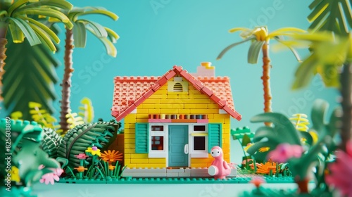 A real photography of miniature of a house made of in fun theme color. Cute miniature