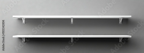 A realistic 3D image of a white, empty supermarket shelf with racks for showcasing products. This modern arrangement presents bookcase stands from different angles, acting as an empty mockup for a