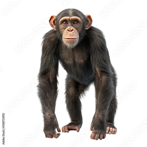 A realistic chimpanzee stands on all fours with