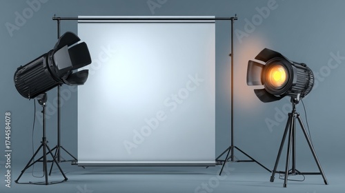 A realistic shot of a blank poster frame on a stand, realistic material, clean white background, soft lighting