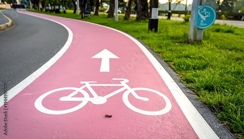 road, bike, lane, red, white, arrow, bicycle, path, cycling, transportation, roadsign, traffic, direction, guidance, street, cycle, marking, signal, signage, transport, infrastructure, travel, way, urban, city, planning, safety, mobility, commute, bicyclist, environment, green, grass, outdoors, daytime, pavement, asphalt, directional, signs, indication
