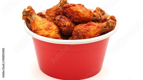 chicken, fried, bucket, red, food, crispy, delicious, meal, dinner, lunch, snack, tasty, comfort, junk food, fast food, cookery, receipe, cooking, eat, eating, ravenous, favor, savoury, crunchy, gold, brown, greasy, juicy, protein, meat, poultry, white, background, photo, studio, image, picture
