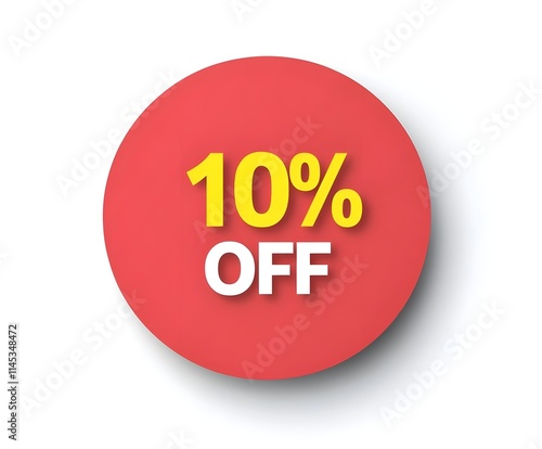 A red circular sticker with the text "10% OFF" in bold yellow font on a plain white background