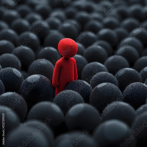 A red figure among black spheres symbolizes identifying insider threats, security