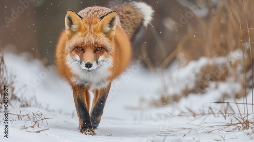 A Red Fox Goes for a Walk in the Winter