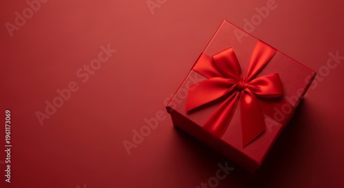 present, gift, box, red, ribbon, bow, surprise, celebration, festive, wrapped, cardboard box, holiday, christmas, birthday, anniversary, special, giving, receiving, ceremony, donation, gratitude, love, joy, happiness, share, offer, reward, treat, delight, expression, gesture, thankful, thoughtful, generous, high-coloured, bright, shiny, texture, square, elegant, graceful, studio, isolated, object, top, view, closeup, romantic, luxury