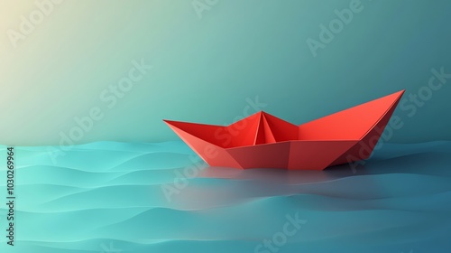 paper, boat, origami, craft, red, blue, sky, wave, sea