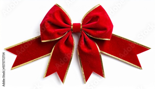 A red satin ribbon bow with gold trim centered on a horizontal ribbon—symbolizing celebration, elegance, and gift presentation for festive or special occasions.