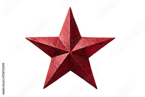 isolated, object, element, cut-out, empty, red star, three-dimensional, geometric shape, texture, metallic, symmetric, white background, shadowed, single object, minimalistic, symbolic