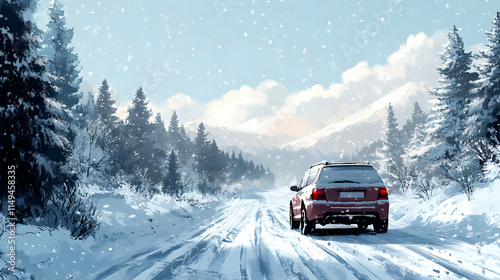 snow, vehicle, winter, road, tree, mountain, landscape, travel, adventure, nature, cold, scenery, outdoors, journey, frost, weather, exploration, scenic, calmness, freedom, rural, driving, horizon, sky, cloud, serene, remote, wilderness, peaceful, glacé, path, environment, white, solitude, escape, beauty, chill, fresh, terrain, winterly, snowflake
