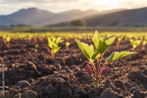 plant, germ bud, germinating, agriculture, farming, field, dirtied, earth, growth, nature, landscape, sun, sunlight, golden hour, mountain, hill, rural, background, blurred, texture, vibrant, green, brown, hope, resilience, harvest, promise, serenity, beauty, organic, ecology, environment, ecosystem, natural, photo, image, scene, view