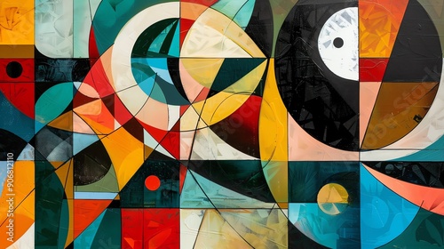 A retro abstract geometric background design, vibrant colors, screensaver, backdrop, canvas design