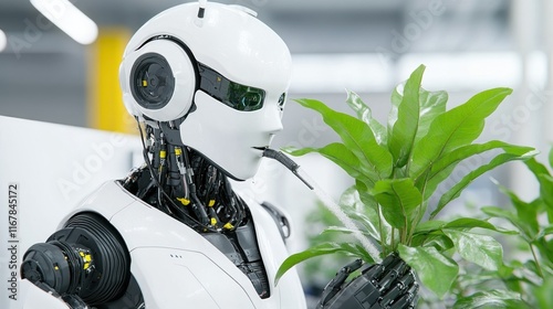 robot, plant, technology, nature, environment, innovation, design, science, future, artificial, intelligence, ecology, sustainability, automation, industry, research, development, aesthetic, machinery, botany, growth, observation, interaction, organic, modernity, engineering, robotic, foliage, green, habitat, simulation, mechanic, programming, creativity, advancement, exploration, balance, harmony, functionality, purpose, visual, analysis