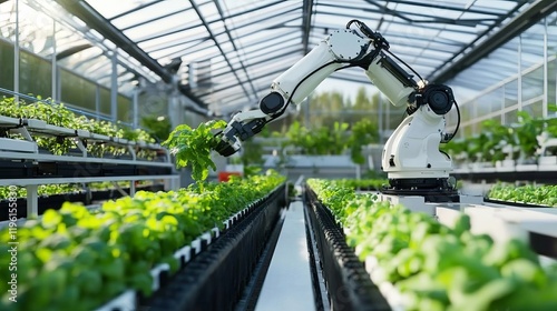 robot, automated, agricultural, harvesting, high technology, vertical, farm, surrounded, advanced, system, neatly, arranged, crop, tech, style, photo, capturing, action, organised, setup, ample, white, space, center, text, high, quality, image, automation, robotic
