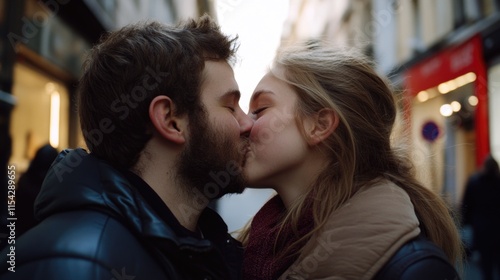 man, woman, kiss, couple, romance, love, city, street, urban, public, display, affection, human relationships, intimacy, partner, significant, other, dating, courtship
