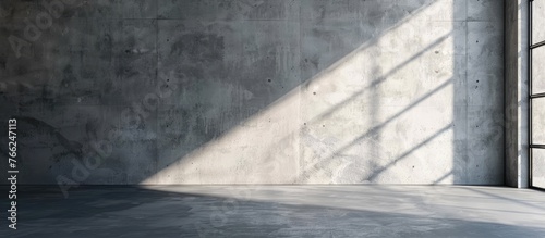 A room with a window and a shadow on the wall, featuring a composite material flooring with a pattern resembling a road surface in electric blue and wood accents