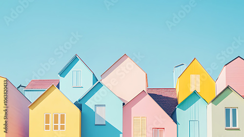 house, colourful, row, sky, blue, architecture, home, real estate, exterior, design, urban, landscape, city, town, community, neighbourhood, building, structure, window, door, roof, bright, happy, vibrant, pastel, modern, contemporary, abstract, minimalism, geometric, illustration, digital artwork, graphic, pattern, background, texture, wall, facades, style, concept, art, photo, image, visual, minimal