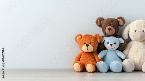 stuffed animal, colourful, row, white background, cosy, inviting, atmosphere, playroom, childcare center, decoration, cute, doll, soft, furry, cuddly, whimsical, fun, children, children, toy, collection, display, shelf, cheerful, bright, happy, rainbow, adorable, sweet, charming, vibrant, arrangement, pattern, organised, snug, comforting, nostalgia, childhood, memory, playtime, companionship, laughter, joy, happiness