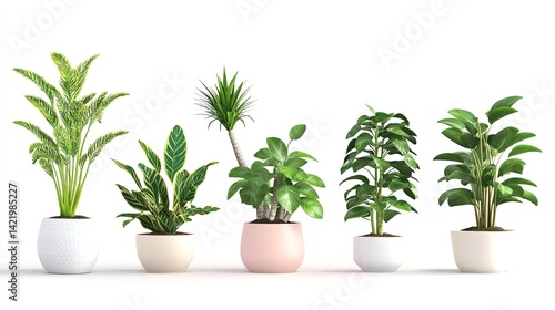 potted plants, houseplant, foliage, greenery, white background, studio shot, leaf, botanical, flora, decoration, home decor, still life, arrangement, minimalist, modern, domestic, collection, variety
