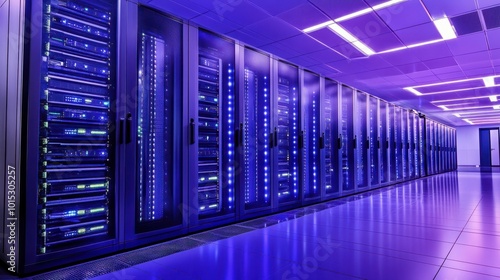 A row of servers in a server room. Perfect for technology and data center concepts