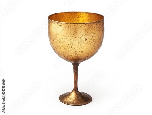A rustic antique golden chalice, set against a white background, in PNG transparent form.