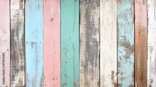 A rustic wooden panel background with vertical planks in a mix of pastel shades, including blue, pink, yellow, and lavender.