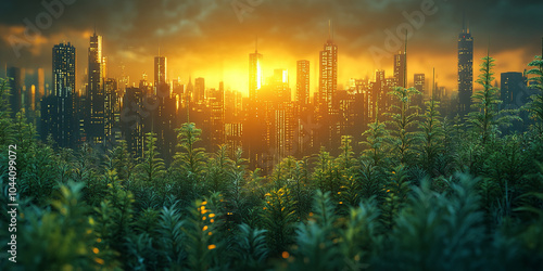 a scene that combines stock investing with sustainability and nature. The image can have a techy vibe