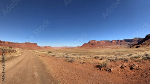 desert, road, landscape, mountain, blue, sky, nature, scenery, dirt, terrain, horizon, dry, wilderness, rock, vegetation, arid, travel, adventure, exploration, outdoors, calmness, immensity, geology, earth, beauty, sunlight, shadow, remote, open, expansive, natural, peaceful, photo, journey, freedom, solitude, pathway, environment, vista, wild, empty, clear, serene, rugged, distant, scenic, view, calm, rustic