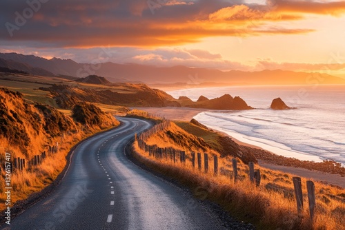 scenic, drive, along, coastal, road, cliff, 1, side, ocean, stretching, horizon, other