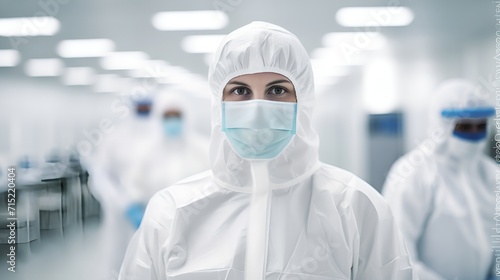 A scientist in a cleanroom looking at test tubes , scientist, cleanroom, test tubes