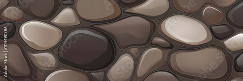A seamless texture of smooth river stones, polished by water, in muted gray and brown tones