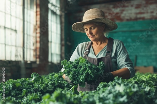 kale, farmer, woman, senior, agriculture, farming, greenhouse, harvesting, healthy, vegetable, gardening, organic, food, produce, farm, rural, countryside, healthy eating, fresh, green, leaf, crop, plant, nature, dirtied, sustainable, local, environmentally friendly, growth, cultivation, nourishment, vitamin, antioxidant, salad, cooking