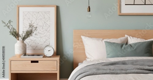bedchamber, bed, scandinavian, interior, room, home, furniture, decor, indoor, modern, design, pillow, white, wall, house, background, lamp, apartment, cosy, style, wooden, lifestyle, blanket, decoration, light, table, bedside, rug, empty, stylish, window, cushion, flat, object, sleep, hotel, bedding, retro, grey, vintage, comfortable, comfort, sheet, greeting, beautiful, plant, mint, inside