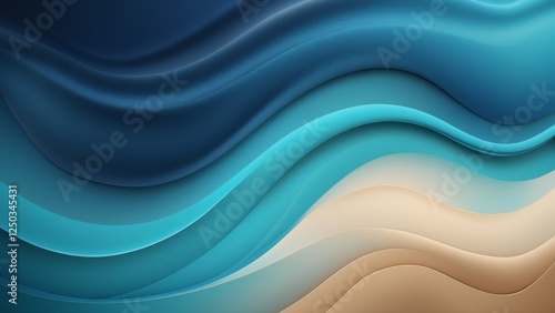 A serene and captivating abstract gradient background evoking the essence of the ocean, featuring a velvety smooth blend of rich deep sea blue, vibrant turquoise, and warm soft sandy beige that evoke