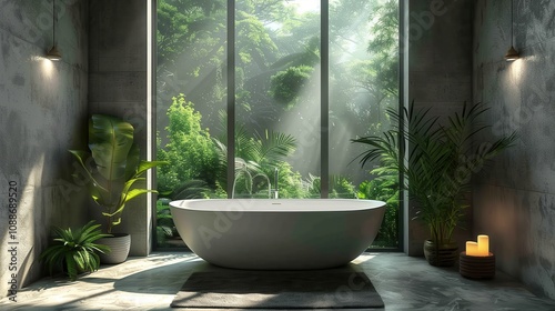 bathroom, tub, nature, greenery, plant, serene, calmness, zen, sustainable, escape, harmony, inspiration, wellness, peaceful, spa, chic, vibrant, aesthetic, contemporary, indoor, relaxation, elegance, luxury, calming, comfort, elegant, sunlight, retreat, soothing, ambience, rejuvenate, interior, bathe, minimalism, light, space, modern, lifestyle, style, design, decor, beauty, environment, natural, fresh, architecture, landscape