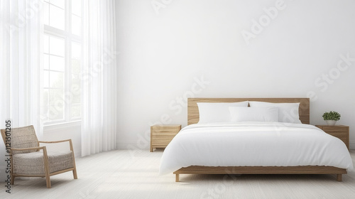 bedchamber, bed, wooden, white, bedding, chair, natural, light, window, serene, minimalist, decor, furniture, cosy, plant, curtain, bright, interior, modern, clean, roomy, home, relaxation, comfort, design, style, contemporary, hardwood, flooring, soft, inviting, peaceful, aesthetic, simplicity, calmness, atmosphere, residential, room, elegant, chic, airy, fresh, neutral, tone, stylish, warm, element, calming, ambience