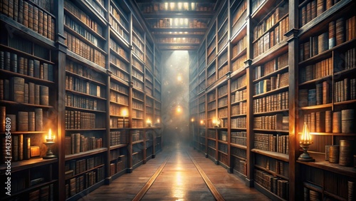 A Serene, Candlelit Hallway in an Antique Library Filled with Volumes of Ancient Books, Illuminated by a Soft, Mystical Glow