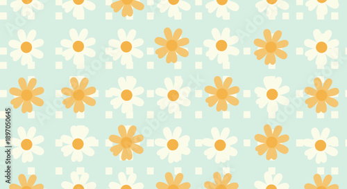 A serene floral pattern featuring white and orange flowers on a soft blue background, viewed from directly above.
