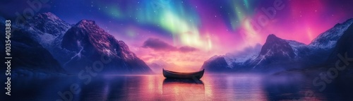 aurora, landscape, mountain, lake, boat, mystic, serenity, visual, calmness, magical, celestial, exploration, twilight, inspiration, wilderness, peaceful, glowing, atmosphere, dramatic, panoramic, vibrant, photo, dusk, horizon, colours, scenery, calm, aglow, enchanting, chilly, artistry, stillness, ice, night, scenic, dreamlike, light, thermal, sky, colourful, beauty, nature, adventure, travel, view