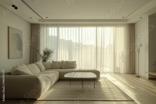 living, room, sunlight, sofa, curtain, minimalist, decor, furniture, design, comfort, space, modern, aesthetic, home, interior, natural, light, atmosphere, calmness, style, contemporary, elegance, relaxation, cosy, soft, flooring, plant, table, rug, warm, inviting, harmony, line, simplicity, structure, layout, ambience, view, urban, chic, arrangement, colours, texture, balance, environment, setting, lifestyle, warmth