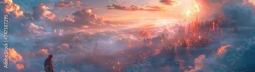surreal, scene, city, floating, cloud, peaceful, bustling, urban, sky, dreamlike, architecture, tranquil, atmospheric, skyline, calmness, aethereal, vibrant, metropolis, serene, lively, imaginary, skyscraper, fantasy, utopia, serenity, imaginative, visionary, futuristic, dreamy, urbanity, aerial, innovative, idylli, tied-up, calm, soaring, modern, whimsical, tower block, uplifting, city landscape, harmony, majestic, elevated, zen, aglow