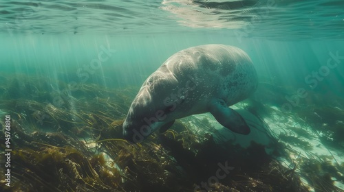 manatee, underwater, clearwater, swimming, serene, sunlit, marine life, ocean, sea, nature, calmness, gentle, seagrass, peaceful, snorkeling, wildlife, underwater photography, habitat, marine animal, preservation, seaweed, submerged, environmentally friendly, conservation, ripple, shallow water