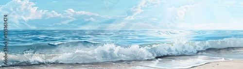 A serene watercolor painting of the ocean with gentle waves and soft colors.