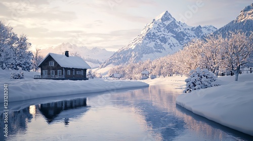 A Serene Winter Landscape Featuring a Bridge with Snow-Covered Surroundings