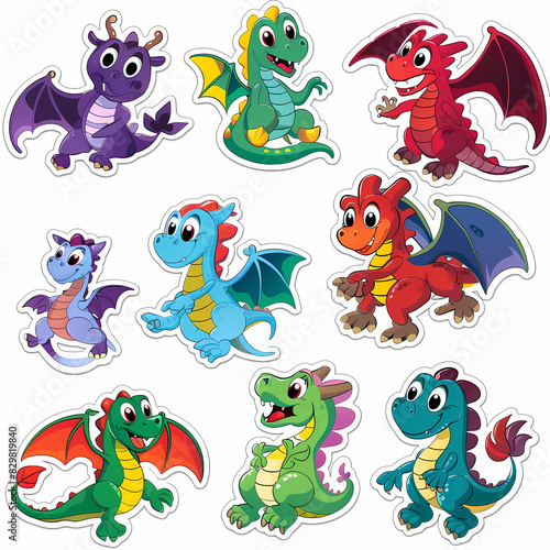 a Set Cute dragon on a White Canvas Sticker,vector image