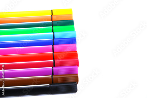 A set of colored markers. All colors of the rainbow. Office and school supplies.