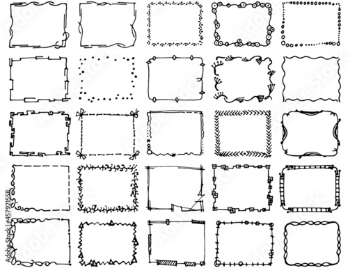 A set of decorative Doodle frames. A shadow. Graphic line. Rectangular sublimations.Black. Ornaments, strokes, curls and lines. Making gifts, packaging. Creating a mask in digital design.