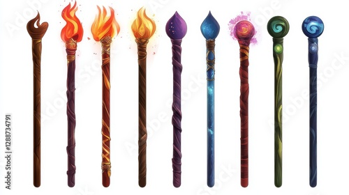 wand, magic, icon, set, game, isolated, white, background, staff, fantasy, mystical, enchanted, magician, spell, black magic, power, artifact, supernatural, rpg, adventure, strategy, interface, collectable, amulet, esoteric, enchantment, sorcerer, warlock, aglow, mystic, charme, mystery, alchemy, energy, crystal, illusion, divination, wooden, ornate, glowing, ancient, magical, relic, rune